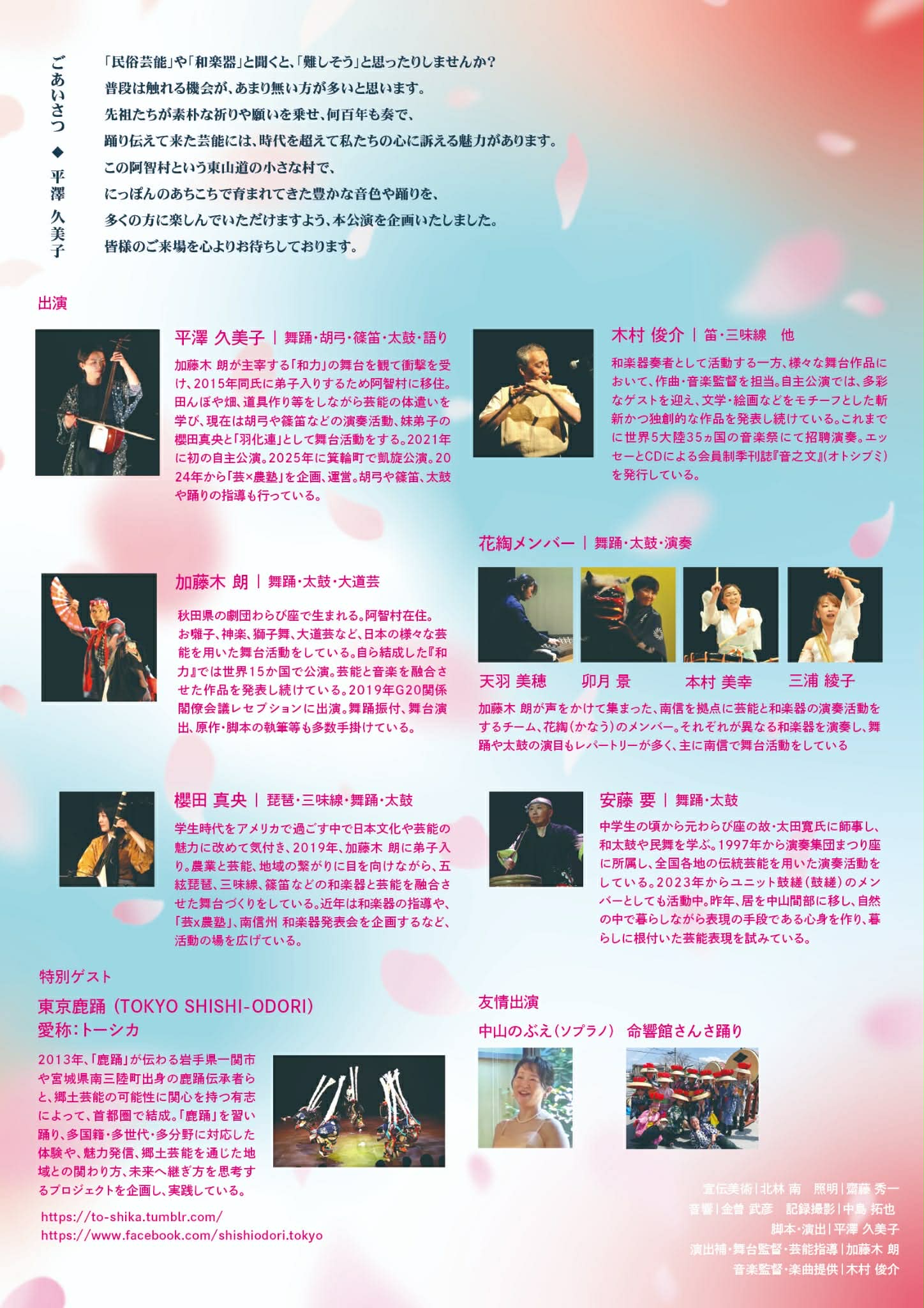 出 演/平澤久美子(胡弓、舞踊、太鼓、語り)